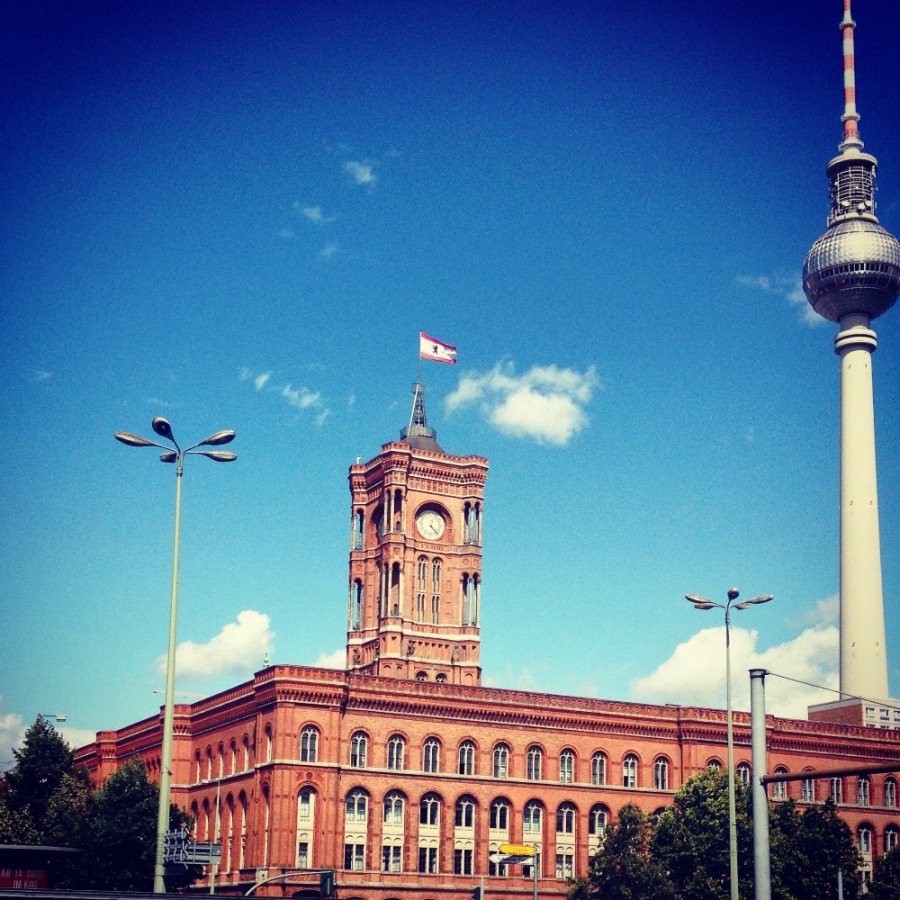 Aș zice că puținele locuri văzute au fost cele care mi-au plăcut cel mai tare și aș începe cu Domul, pentru că am locuit la 2 pași de el și îl vedeam de fiecare dată. Aduce un pic cu Vaticanul, deși e o biserică evanghelică, cupola rotundă și cripta ce adăpostește împărați și prinți m-au dus cu gândul la biserica San Pietro. E interesant că domul nu este scaun episcopal, acest rol revenind Bisericii Sf. Marii, situată și ea foarte aproape (foto dreapta). Și dacă am postat această poză, vedeți pe fundal turnul de televiziune, dar era o coadă uriașă, așa că am renunțat. Tot în zona Alexander Platz este și clădirea primăriei (foto stânga).