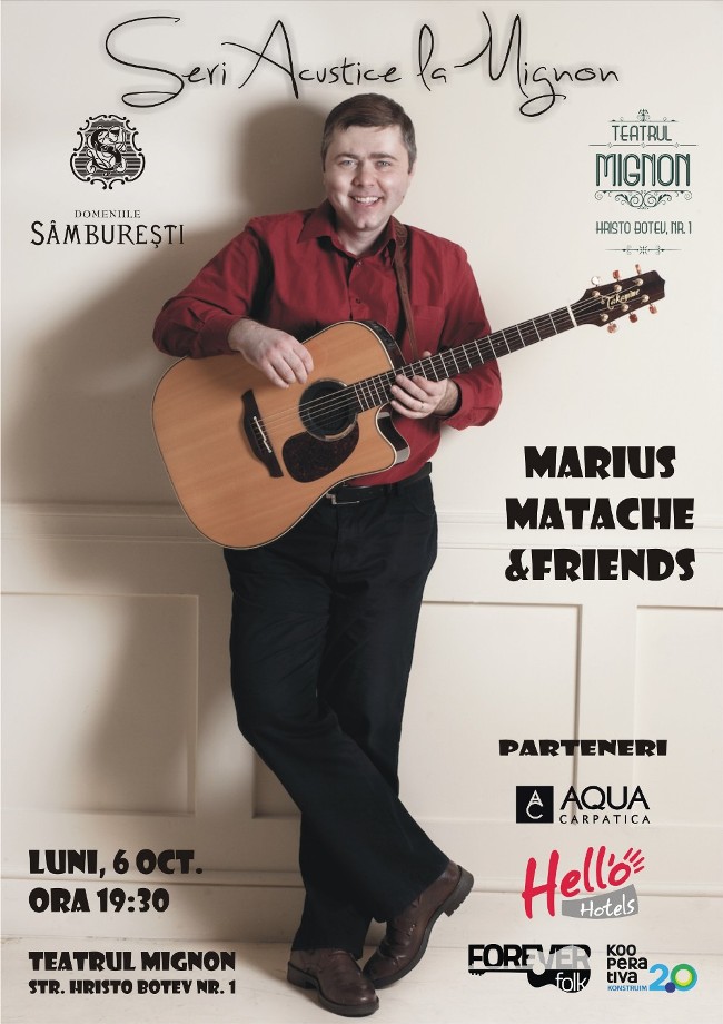 Și dacă tot suntem la capitolul informații utile, m-am gândit să dezvăluim și una din surprizele pregătite pentru primul spectacol din seria Seri acustice la Mignon. Mai precis, numele invitatului special al acestui spectacol: Sorin Poclitaru. Practic, vom reedita Alchimia toamnei de anul trecut, un spectacol ce a demonstrat, dacă mai era nevoie, chimia dintre mine și el. Sorin își va lansa cu această ocazie cartea de poezii intitulată O carte nouă. Iar eu am câteva surprize muzicale pentru el, adică o serie de piese pe versurile lui pe care le va asculta în premieră. Evident, nu vor lipsi din program autografele pe cărți din partea poetului și pe discuri din partea mea (dacă nu le aveți deja).