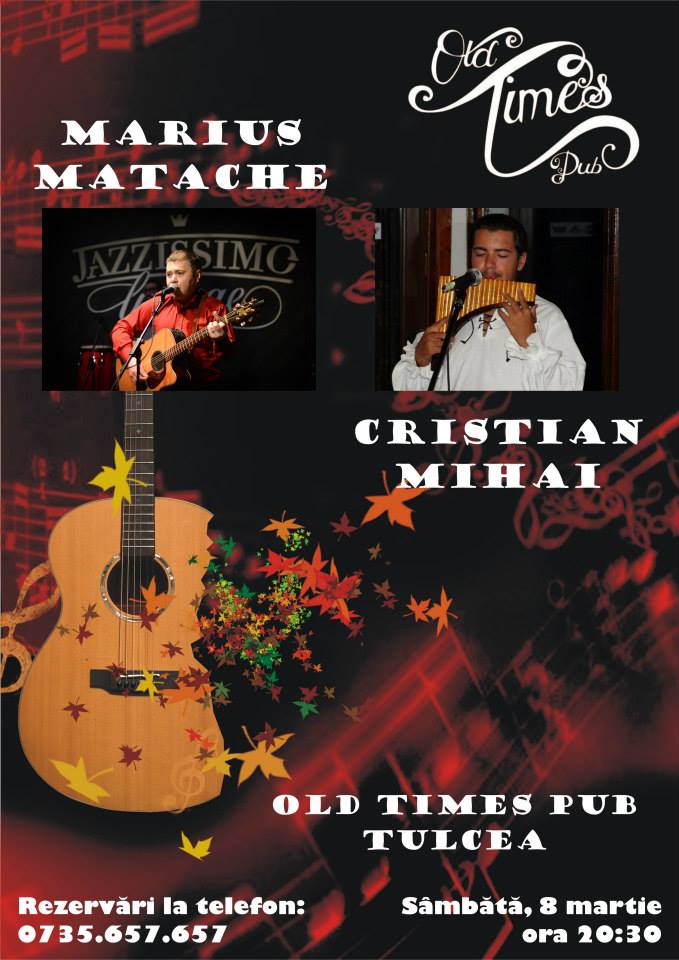 Și pentru că nu am mai cântat la Constanța de mai bine de un an, duminică, 9 martie, ne vedem în Club Doors, gazda mea ca de fiecare dată. Prețul biletelor este de 15 lei, ora de începere a concertului este 21:00, tot Cristi Mihai și naiul său mă vor acompania.