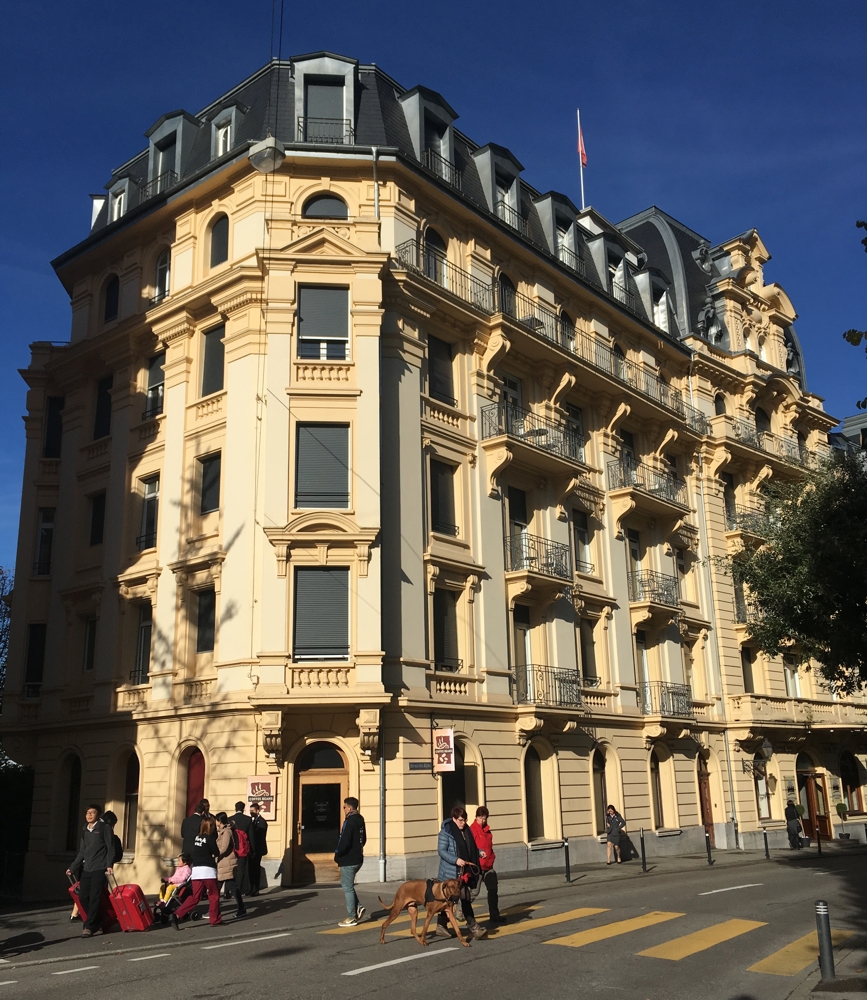 Cea de a 3-a instituție de hospitality vizitată în cu ocazia IRF 2017 a fost Hotel Institute Montreux (HIM). Ne plimbam cumva neoficial, în cele câteva ore libere, iar la un moment dat Tarek, “ghidul” nostru, se oprește și ne face semn către o clădire arătoasă, din inima orașului Montreux (foto dreapta).