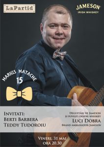 Turneul aniversar este cu și despre prieteni, așa că nu puteam ocoli faimosul La Partid din Lehliu. Astfel că, pe 31 mai, punem țara la cale în stil mare eu și prietenul Emil Constantinescu, alături de Luci Dobra, brand ambasadorul Jameson, sponsorul turneului (vedeți cum se leagă lucrurile când suntem între prieteni care pun umărul?). Nu voi fi singur, ci alături de Berti Barbera și Teddy Tudoroiu.